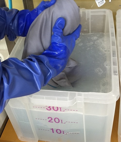 1つ目は、素材の種類、濃淡によって配合を細かく調整された漬け込み液に全体を1~2時間漬け込んでしみを落とす方法です。
